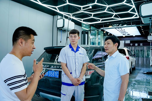 “我现在来到企业已经3个月了,老板人很好,师傅也很照顾我,这里还有比我早一年入职的万通学长,他们都很照顾我,我在企业能接触到机修、钣喷、美容等好几个工作内容,在不同的岗位上都有不同的收获。”就业学子马勇告诉小万他入职3个月后的感受。